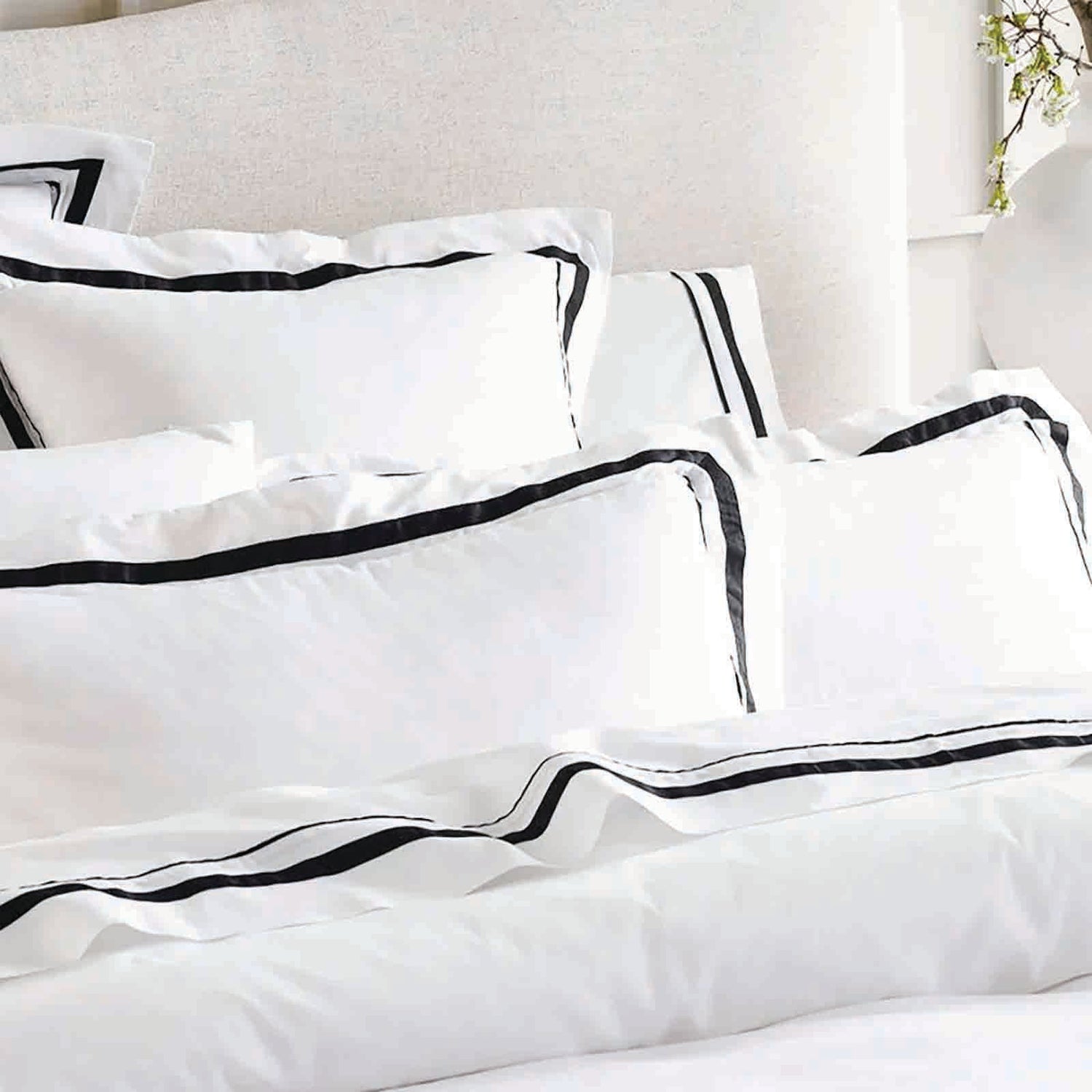Egyptian Cotton 1000 Thread Count Sheet Set. There's a reason 100% Cotton Sheets remain a timeless favourite. They offer lasting durability, keeping you cool in the summer and cozy in the winter. Our ultra-soft Cotton Sheet Set features a classic white base, enhanced with a refined double edging available in Navy or Charcoal. A modern twist on a linen cupboard essential. This beautiful Sheet Set not only enhances your home but also supports a more sustainable planet. European Pillowcases sold separately.