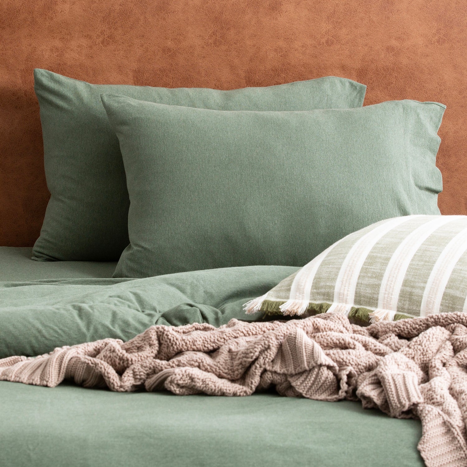 Experience unmatched comfort with our Melange Organic Cotton Jersey fitted & pillowcase set – just like your favourite vintage tee. Made from single-knit organic cotton, this fitted sheet & pillowcase set offers cosy softness, natural stretch, & a relaxed, wrinkle-resistant finish. No flat sheet included – just the essentials for breathable, easy sleep-in colours that suit your style. Proudly Made in Green.