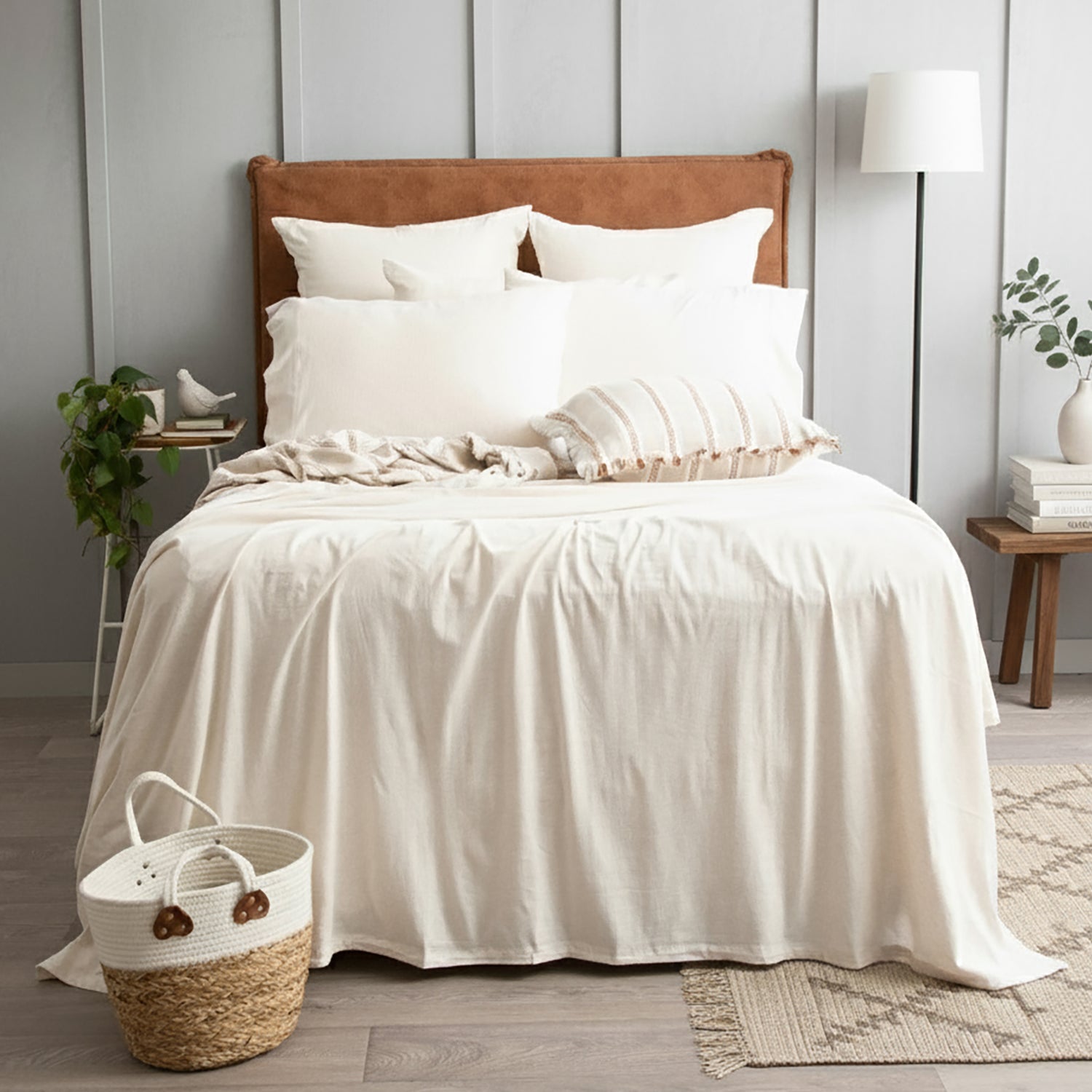 Unparalleled comfort & versatility with our melange organic cotton jersey sheets, reminiscent of the timeless softness of a vintage Tee. Offering a perfect balance of cosy weight & casual breathability, they guarantee restorative sleep. Crafted from single-knit organic cotton, Renee Taylor’s set ensures stretch, softness, & wrinkle-release convenience. Effortlessly elevate your bedroom with a variety of colours that seamlessly blend to reflect your individual style. Proudly Made in Green.