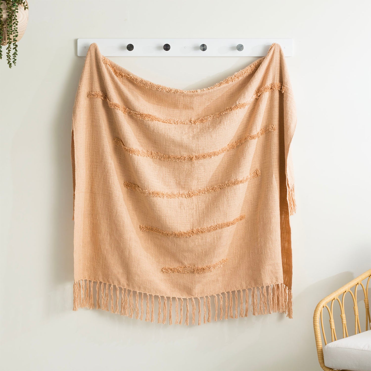 Renee Taylor Cambridge Cotton Slub Tufted Throw 130 x 170 Cms Tan