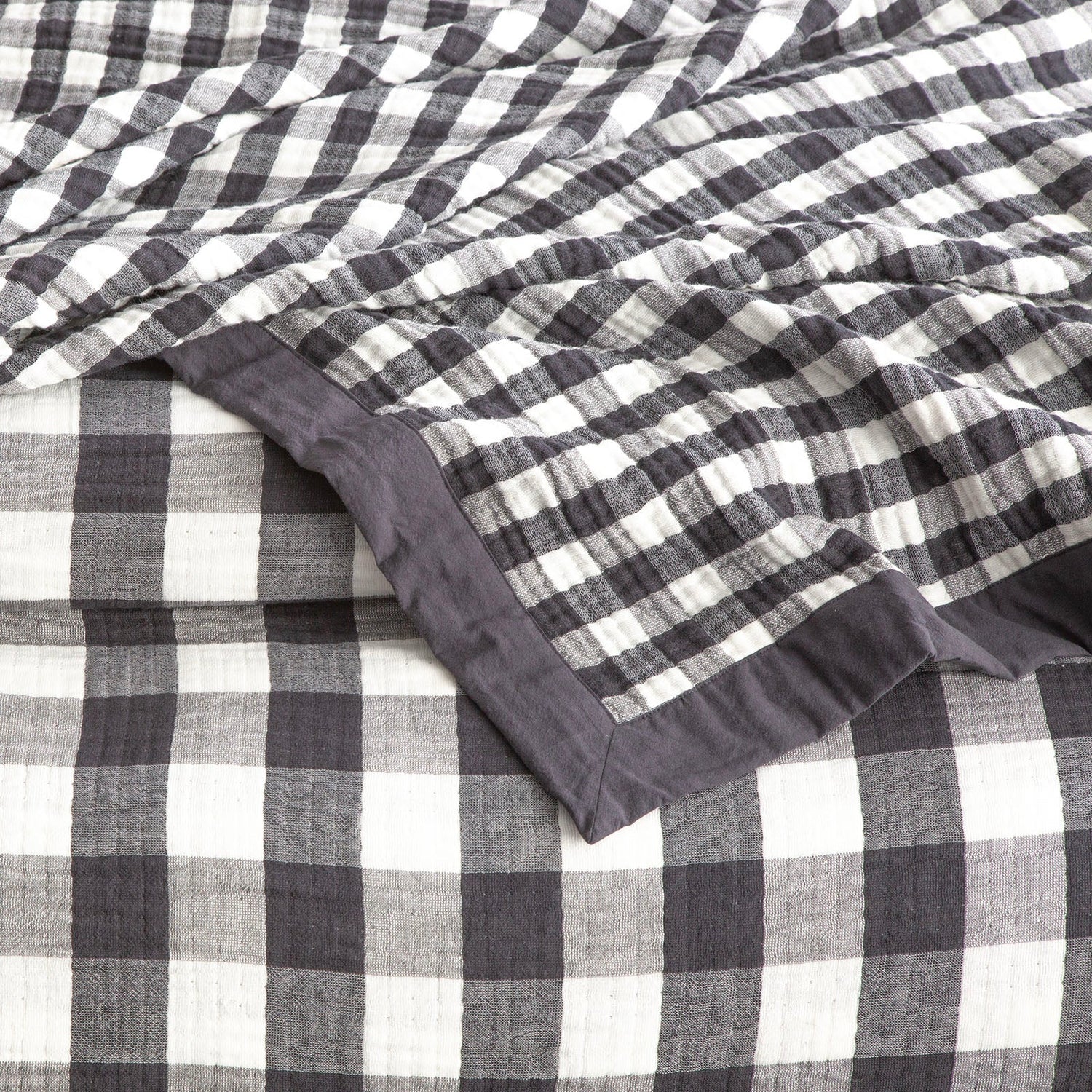 Renee Taylor Gingham Washed Cotton Yarn Dyed Revesible Textured Blanket Ash